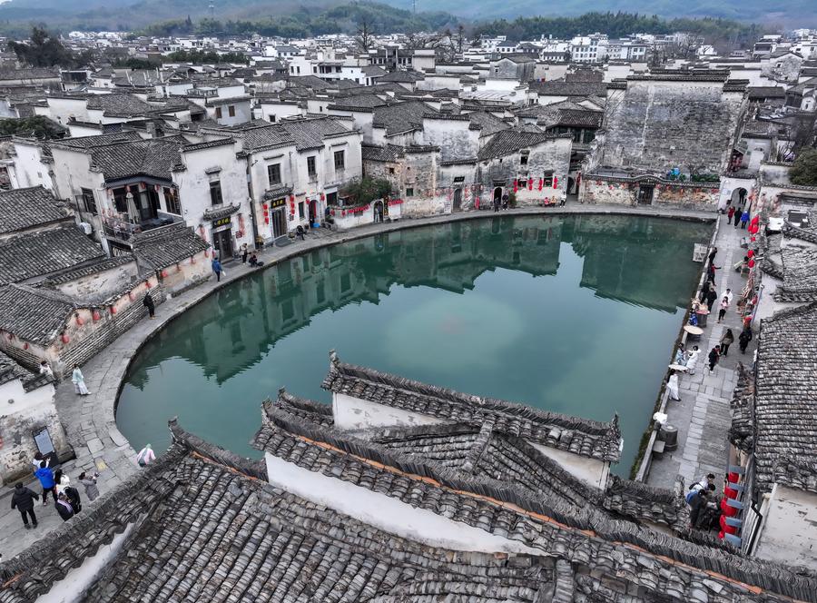 Featuring black roof tiles and white walls, the Hui-style architecture is an iconic element in east China's Anhui Province. Together with surrounding mountains and rivers, the Hui-style buildings embodying the ancient Chinese philosophy of coexisting with nature form picturesque views like traditional Chinese ink paintings.