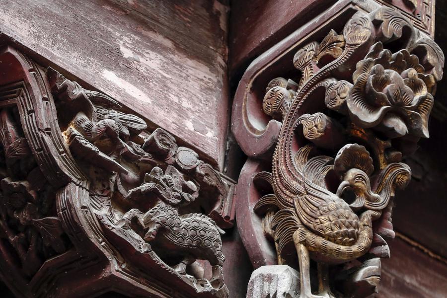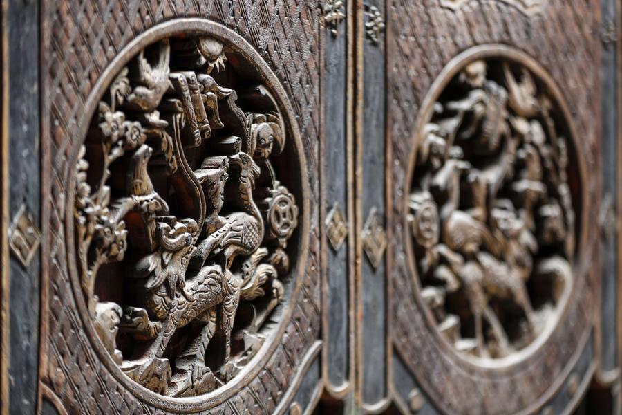 This photo taken on Jan. 26, 2024 shows a wood carving on a house at Xidi Village of Yixian County, east China's Anhui Province. (Photo by Shi Yalei/Xinhua)