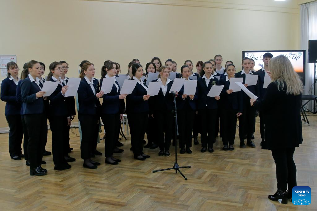A student choir performs during an event organized by Confucius Institute of Transilvania University of Brasov to mark the UN Chinese Language Day in Brasov, central Romania, April 19, 2024. (Photo by Cristian Cristel/Xinhua)