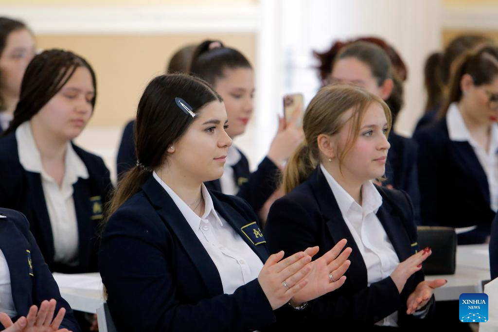 People attend an event organized by Confucius Institute of Transilvania University of Brasov to mark the UN Chinese Language Day in Brasov, central Romania, April 19, 2024. (Photo by Cristian Cristel/Xinhua)