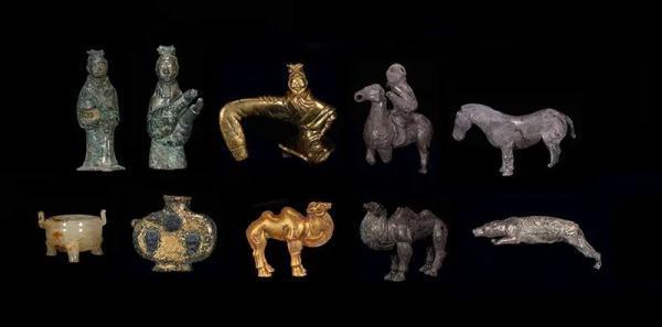 墓から出土した金銀などの小型人形