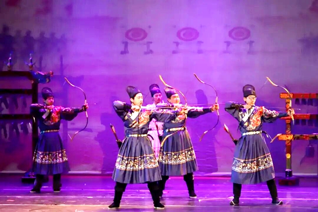 體育科學學院射藝團隊呈現了《孔子射藝箭陣》,射手們動靜有節,進退如儀,生動詮釋了“射者,仁之道也”的文化內涵,賡續孔子六藝之薪火于今朝。