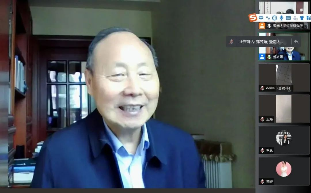 4月14日,郭齊勇應邀出席在線講座,講述中國哲學史百年回顧與當代發展(李念截屏)