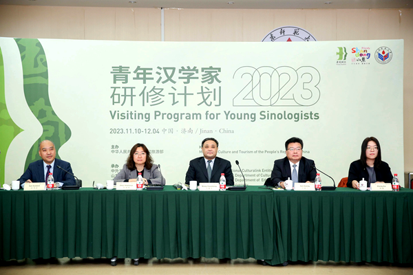 2023青年漢學家研修計劃山東班開班儀式11月11日在山東省濟南市山東師范大學成功舉辦。該活動由文化和旅游部主辦,中外文化交流中心、山東省文化和旅游廳、山東省教育廳和山東師范大學共同承辦。山東省文化和旅游廳一級巡視員王春生、山東省教育廳二級巡視員孫祖興、山東師范大學副校長周珊珊等領導、嘉賓和來自24個國家的25名青年漢學家出席。