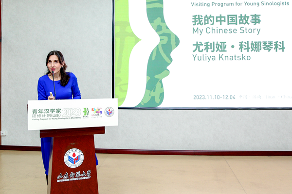 山東師范大學副校長周珊珊表示,青年漢學家研修計劃山東班開班,為我們搭建了中外交流、文明互鑒的橋梁。研修將圍繞“中華優秀傳統文化與中華文明的突出特性研究”這一主題,開展五岳之尊泰山、中華母親河黃河、孔子故里曲阜、泉城濟南、濰坊青州古城等一系列內容豐富的研修項目,領略齊魯文化、儒家文化乃至中華文化的獨特魅力,在深入的交流中增進彼此之間的了解和友誼。她指出,通過這次文化、友誼之旅,各位青年漢學家朋友們一定樂于向身邊的人分享這段旅程,把可信可愛可敬的中國形象展現給更多的人,做中華文化的積極傳播者和中外文化交流的友好使者,推進各種文明交流交融、互學互鑒。