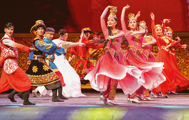 2023年7月20日,第六屆中國(guó)新疆國(guó)際民族舞蹈節(jié)在烏魯木齊開(kāi)幕。本屆舞蹈節(jié)以“舞動(dòng)夢(mèng)想 和美絲路”為主題。圖為演員在開(kāi)幕式上表演。 新華社記者 胡虎虎/攝