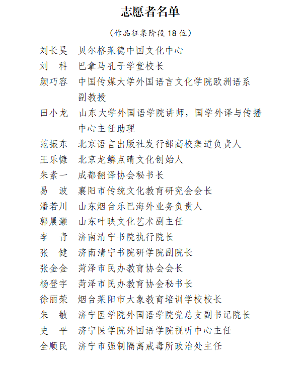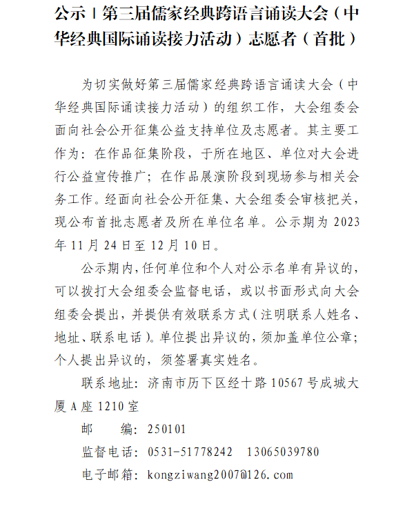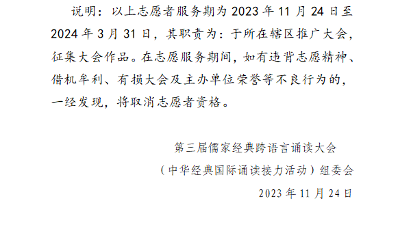 公示|第三屆儒家經典跨語言誦讀大會(中華經典國際誦讀接力活動)志愿者(首批)