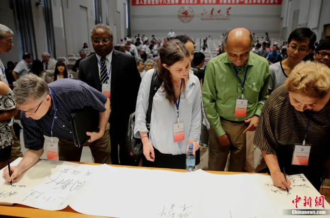 2014年5月,第三屆尼山世界文明論壇在山東閉幕,多國學者共同提出了《在文明對話中培養人類福祉之責任意識共同協定》的倡議,與會學者紛紛在該倡議書上簽字。梁犇 攝