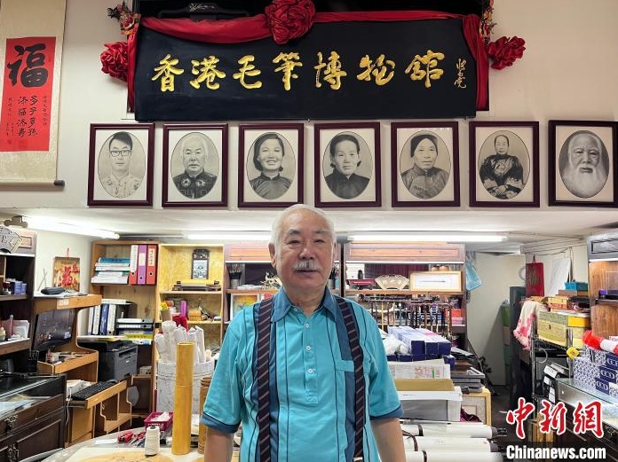約定專(zhuān)訪這日,暴雨如注,中新社記者迷失于九龍土瓜灣的高樓林立間,此時(shí)發(fā)須皆白的張虹霓撐著一把傘站在不遠(yuǎn)處,頗有遺世獨(dú)立之風(fēng),領(lǐng)著記者穿過(guò)商場(chǎng),拐入一條窄巷,一推門(mén),“香港毛筆博物館”金字招牌,赫然醒目。