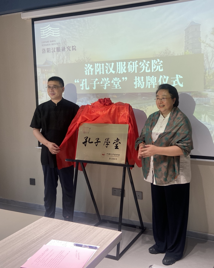 山東師范大學僑聯原常務副主席、外國語學院原黨委書記、“孔子學堂萬里行”志愿者呂志紅,山東省濟南市萊蕪區官場社區黨委書記、居委會主任、中國村社發展促進會秘書長、孔子學堂(第589號)主任張珂,老城區政協副主席、區工商聯主席、洛陽漢服研究院執行院長李海燕,老城區文化旅游產業發展服務中心主任田瑞,儒學中心(基金會秘書處)傳播普及部、洛陽漢服研究院等單位有關人員參加揭牌和開講儀式。