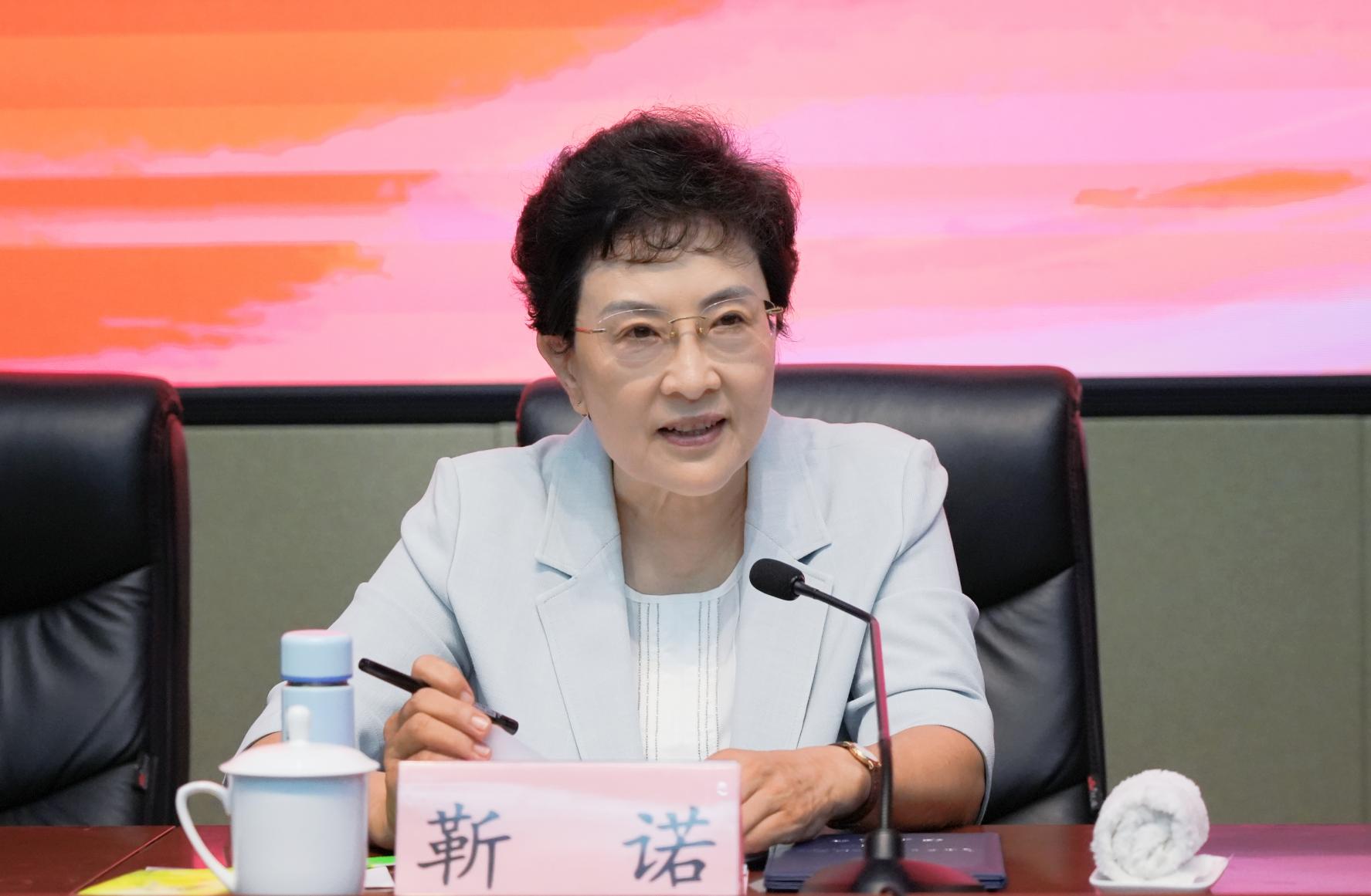 開學典禮上,靳諾對2024級中華優秀傳統文化專項研究生提出殷切希望。她指出,要聽黨話、跟黨走,堅定理想信念,深入研究馬克思主義基本原理同中華優秀傳統文化相結合的歷程與要義。要把握時代脈搏,聆聽時代聲音,理解中華優秀傳統文化的世界意義,勇敢承擔起時代賦予的責任。要學真知、求真理,踐行實事求是,深刻理解和弘揚中華優秀傳統文化的時代精神,以高度的歷史使命感和強烈的社會責任感,厚植“國無德不興,人無德不立”的道德理念。要為祖國、為人民,練就過硬本領,以深厚的學養助力以中國式現代化全面推進中華民族偉大復興的時代偉業。立足中國特色社會主義的偉大實踐,吸收借鑒古今中外一切有益成果,努力創造體現時代精神、符合實踐要求的學術精品。堅守創新報國之志、勇闖創新突破之路、永葆創新創造之力,以創新為魂,與時代共進,成就精彩人生。