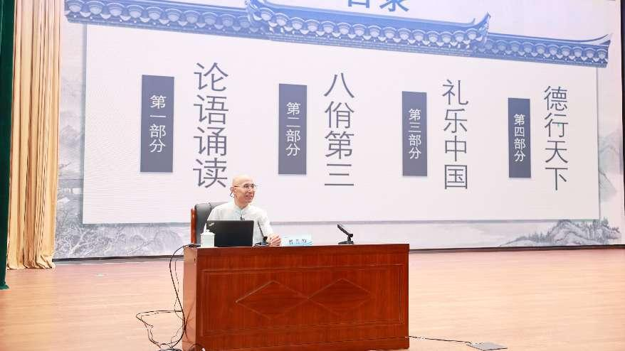 曾教授圍繞解讀國學(xué)經(jīng)典內(nèi)涵、弘揚(yáng)中華優(yōu)秀傳統(tǒng)文化精神,以《學(xué)而》《為政》中相關(guān)重點(diǎn)進(jìn)行導(dǎo)學(xué),重點(diǎn)講解了《八佾》內(nèi)容,結(jié)合《易經(jīng)》對孔子的為政思想、道德主張及其現(xiàn)實(shí)意義進(jìn)行了詳細(xì)闡述,并在美德健康新生活方面進(jìn)行了延伸解讀,授課內(nèi)容系統(tǒng)全面、內(nèi)涵豐富。