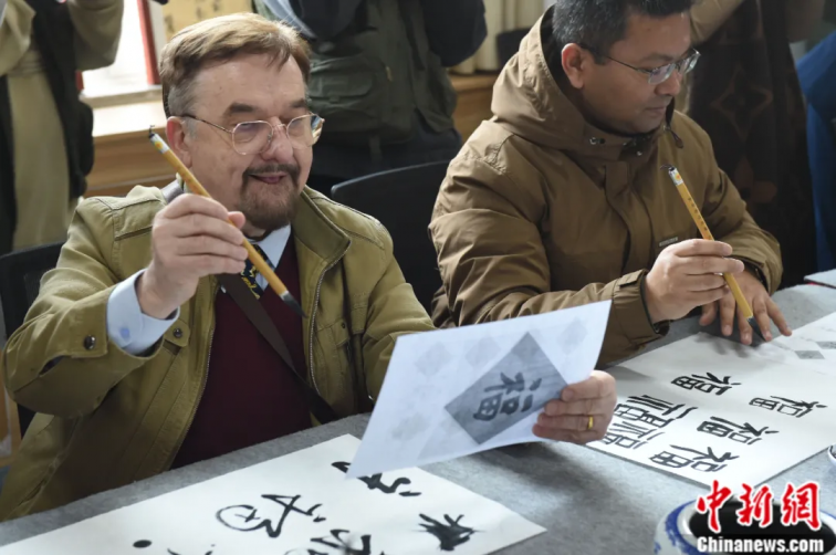 外國人在山東煙臺學(xué)寫“福”字。中國文化成為了解和認(rèn)識中國的窗口。曲正揚 攝
