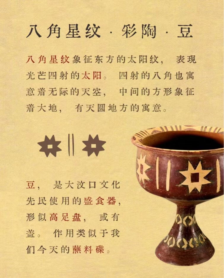 直到距今6100至4600年,手工業發達的大汶口文化誕生,彩陶藝術是其顯著特征,尤其是八角星紋彩陶豆等作品,展現了高超的藝術水平。