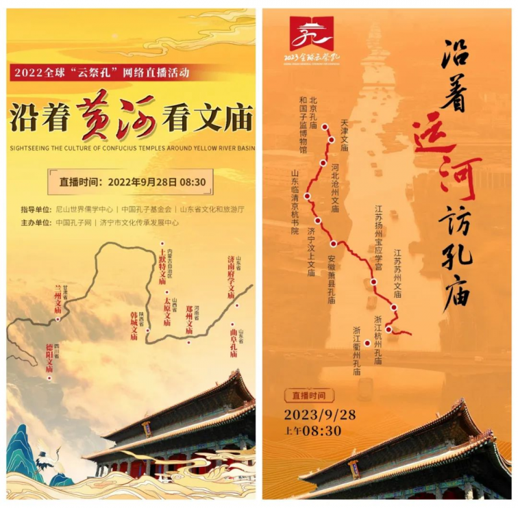 探索文化傳承發展模式,以鮮明的地理標識生動展示文化脈絡。創新推出“沿著黃河看文廟”“沿著運河訪孔廟”活動,積極探索“黃河文化”“運河文化”與“儒家文化”契合點,奮力書寫貫徹落實黃河、運河國家戰略的“山東答卷”。2022年推出“沿著黃河看文廟”活動,聯絡組織沿黃河九省(區)主流媒體,首次圍繞“儒風黃河”題材,直播相關孔廟祭孔盛況,形成疊加效應,為深入貫徹落實黃河國家戰略貢獻了“山東方案”,引起了巨大反響。2023年又特別推出“沿著運河訪孔廟”活動,活動以京杭大運河為地理線,以孔廟為文化線,實地探訪北京孔廟、天津文廟、滄州文廟、聊城臨清京杭書院、濟寧汶上文廟、宿州蕭縣孔廟、揚州寶應學宮、蘇州文廟、杭州孔廟等運河流經地區的九所孔廟,帶領觀眾一起探究儒家文化沿運河發展脈絡,領略新時代沿運河地區文化“兩創”的新成果。