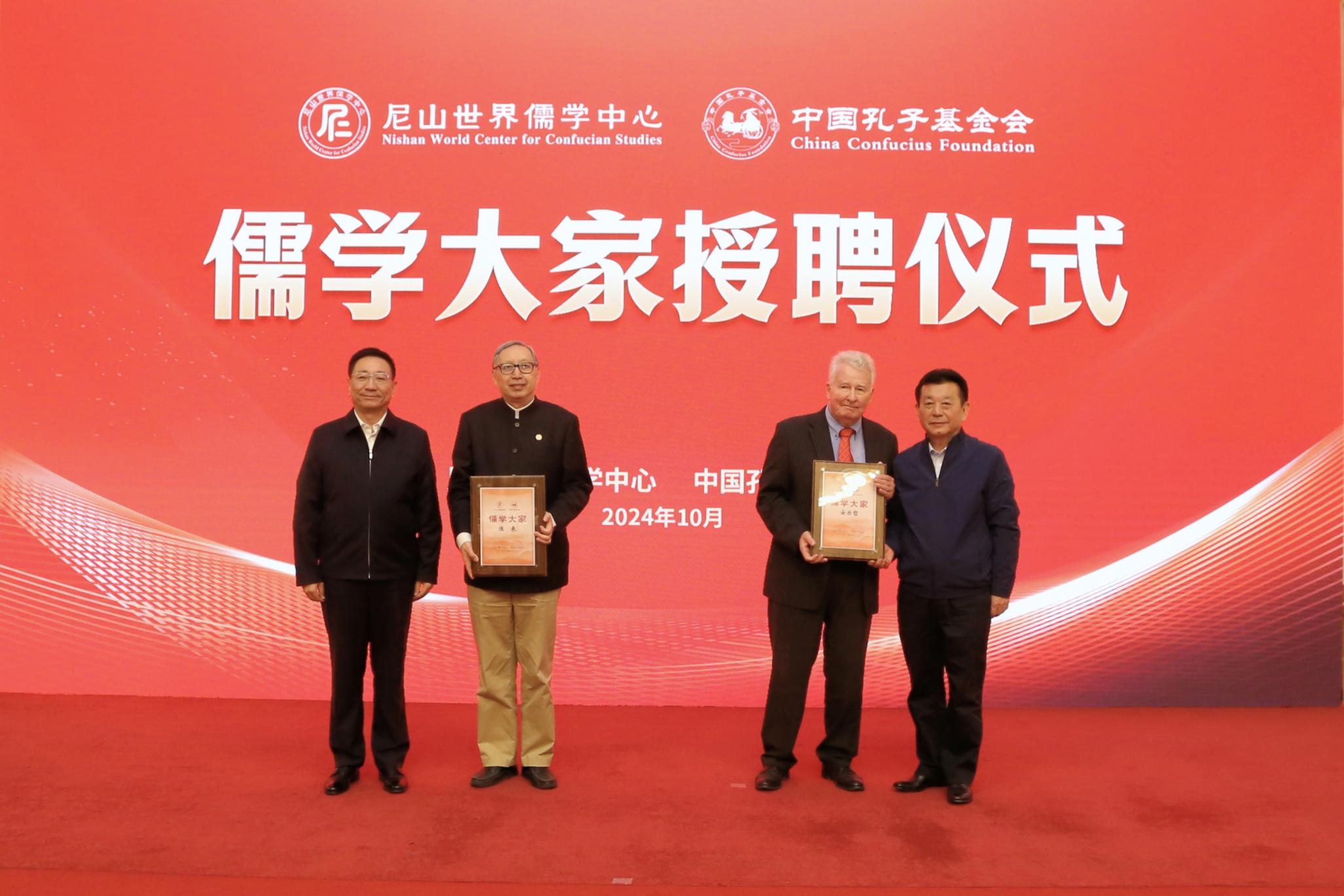 會上,白玉剛、于曉明分別向陳來、安樂哲頒發“儒學大家”聘書,并共同為“中國孔子基金會·全球文明對話交流中心”揭牌。