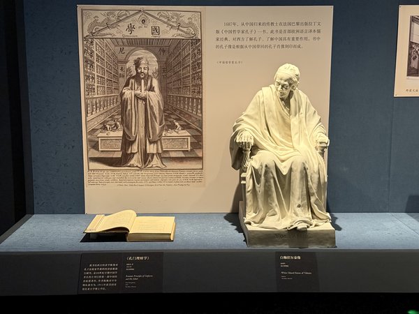 儒家文化還越嶺渡洋,傳至歐洲。1687年,《中國哲學家孔子》一書在法國巴黎出版。此書是首部歐洲語言譯本儒家經典,由來華傳教士翻譯,對西方了解孔子、了解中國文化具有重要作用。被稱為“啟蒙運動泰斗”的偉大哲學家伏爾泰深入研究儒學,他推崇“仁義禮智信”的做人準則,贊賞“己所不欲,勿施于人”等理念。孔子思想對伏爾泰思想的形成有著重要影響,儒家文化也為西方啟蒙運動提供了智慧和力量。這些在展覽中都有相關展示和介紹。