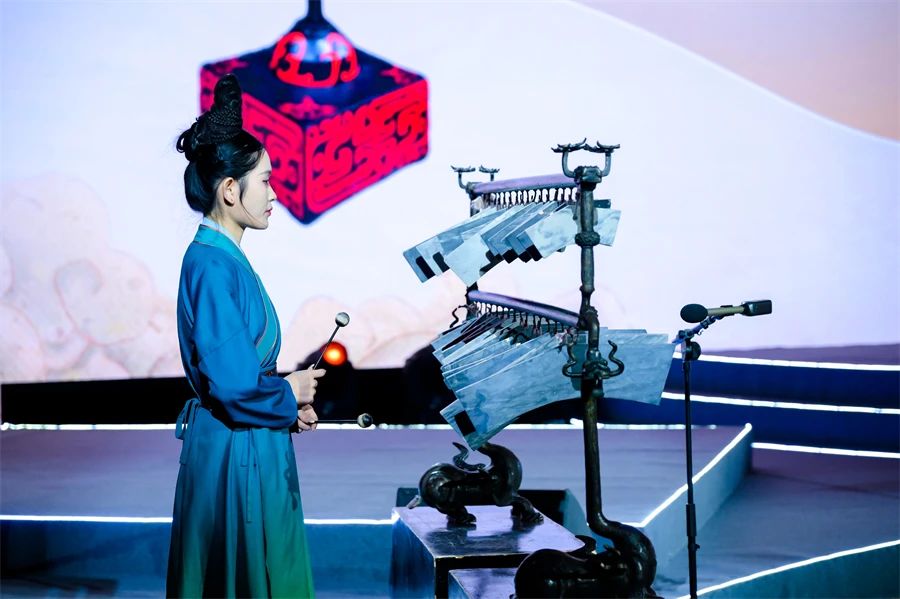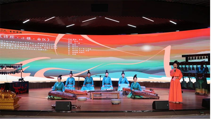 簫韶樂團(tuán)的樂師們身著傳統(tǒng)服飾,奏響八音樂器,為觀眾帶來了《詩經(jīng)·小雅·由儀》《清平樂》等原創(chuàng)雅樂曲目,雅樂旋律古樸,樂聲悠揚(yáng),既威嚴(yán)莊重又不失清新雅致,深刻展現(xiàn)了儒家文化的兼容并蓄,和諧共生的精神內(nèi)涵。簫韶樂團(tuán)與演員張曉龍攜手演繹《弦歌不輟》,更是將活動(dòng)氛圍推向高潮,讓儒家文化在新時(shí)代的舞臺(tái)上煥發(fā)光彩,展現(xiàn)出勃勃的生機(jī)與活力。此次“何以中國·弦歌不輟”網(wǎng)絡(luò)主題宣傳活動(dòng),充分展現(xiàn)了中華民族獨(dú)特的精神氣質(zhì)和鮮明的時(shí)代標(biāo)識(shí)。簫韶樂團(tuán)通過雅樂的演繹,生動(dòng)講述了孔子故事,激發(fā)了年輕一代對傳統(tǒng)文化的濃厚興趣,為中華優(yōu)秀傳統(tǒng)文化的傳承與發(fā)展注入了新的活力。
