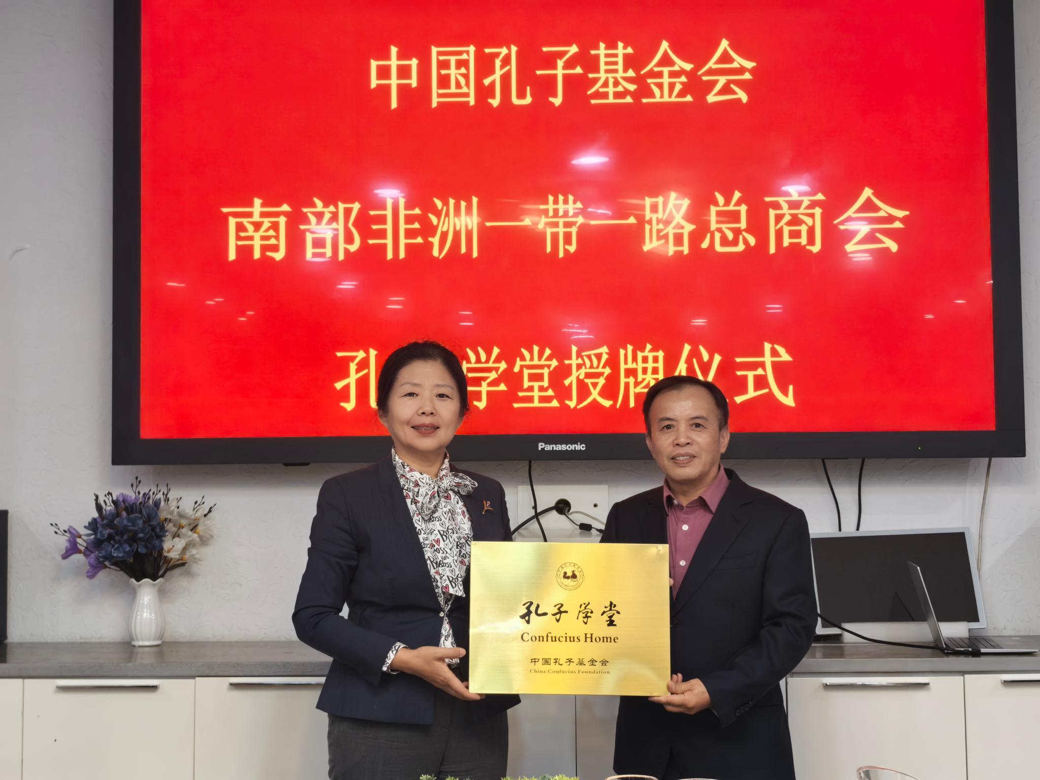 在南非,國承彥一行訪問了南非德班理工大學及孔子學院,為尼山世界儒學中心德班理工大學分中心揭牌,確定雙方通過開展儒家經典祖魯語翻譯項目、組織學術研討、共建文化展示中心等務實舉措,進一步推動海外分中心建設;訪問了南非約翰內斯堡大學孔子學院、南非德班樹德學院,攜手共同開展漢語培訓、傳播中華文化;會見了中非中小農業協會、南部非洲“一帶一路”總商會代表,并為南部非洲“一帶一路”總商會孔子學堂揭牌。
